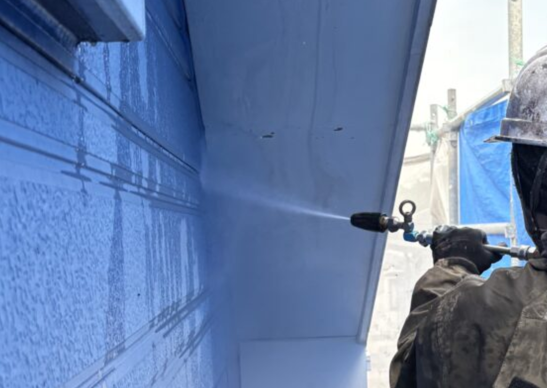 足場設置後、外壁や屋根の高圧洗浄を行います。汚れやカビを徹底的に除去し、塗装の密着性を高めます。洗浄作業は入居者様の生活への影響を考慮し、適切な時間帯に実施します。