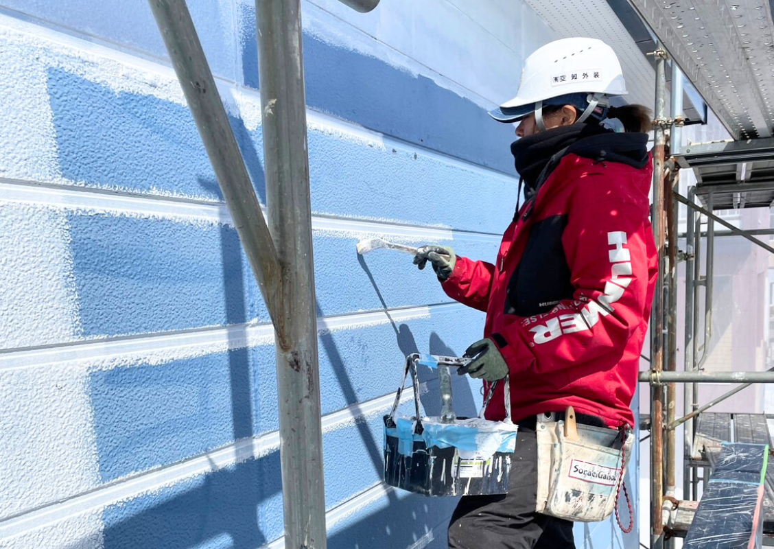 塗装の密着性を高めるため、建物の外壁に最適な下塗り材を使用します。