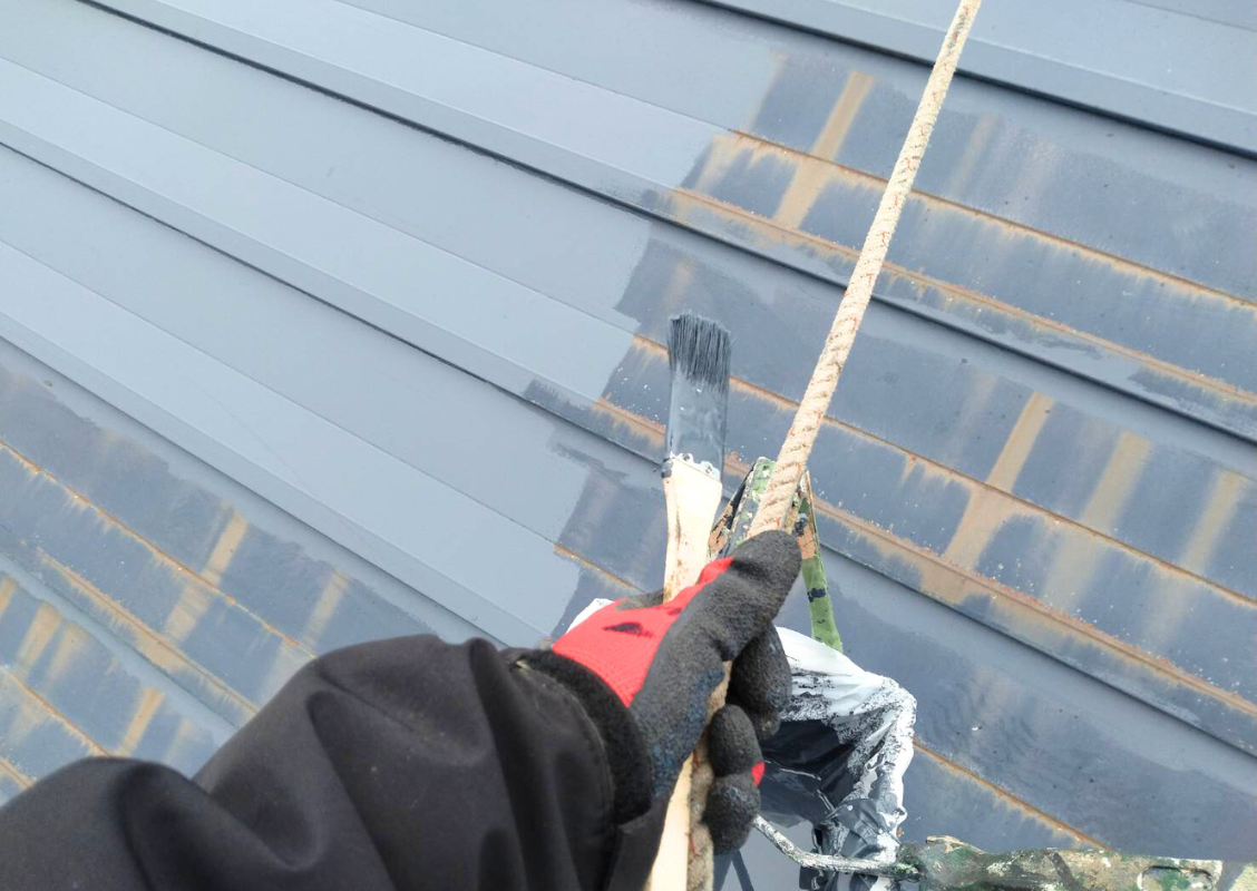 仕上げ塗りです。手塗りで行う塗装店の屋根塗装は、光を反射するくらいに輝きます。