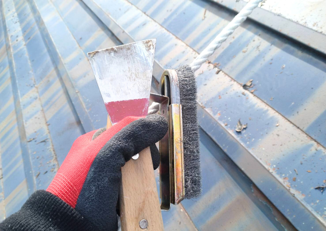 ケレンは、皮スキ・金属ブラシ等を用いて、剥がれが起きている旧塗膜を剥がす作業です。
